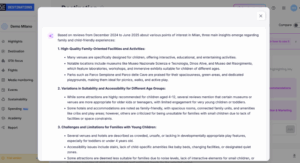 By analyzing all available reviews related to families, the AI concluded that Milan offers a wide range of attractions, particularly museums, parks, and interactive exhibits that engage children and provide educational fun.