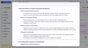 Going a step further, the platform also provides DMOs with practical recommendations for intervention. For example, increasing interactive experiences, ensuring safety, clarity in communication, cleanliness, and the availability of services for young children.